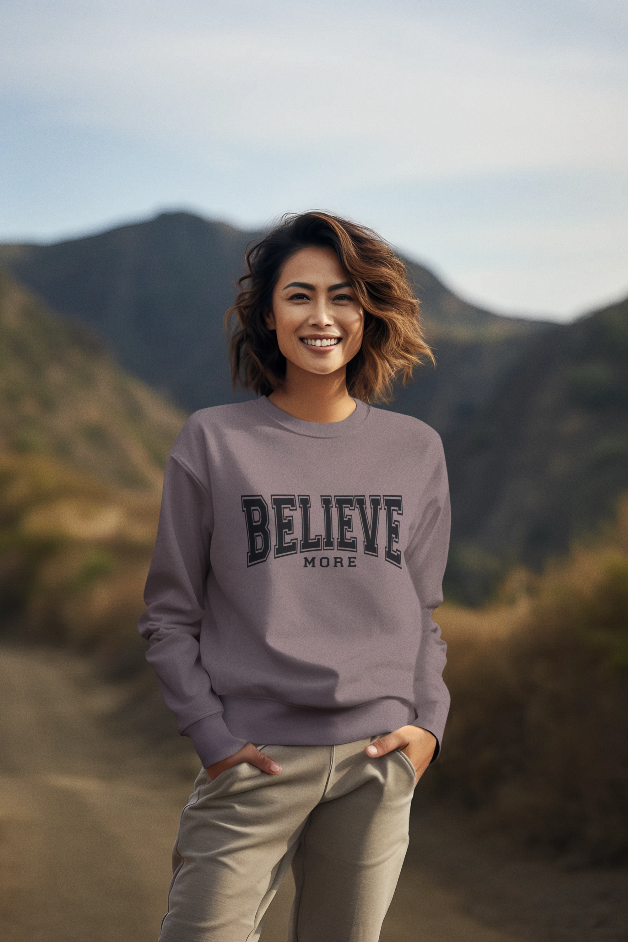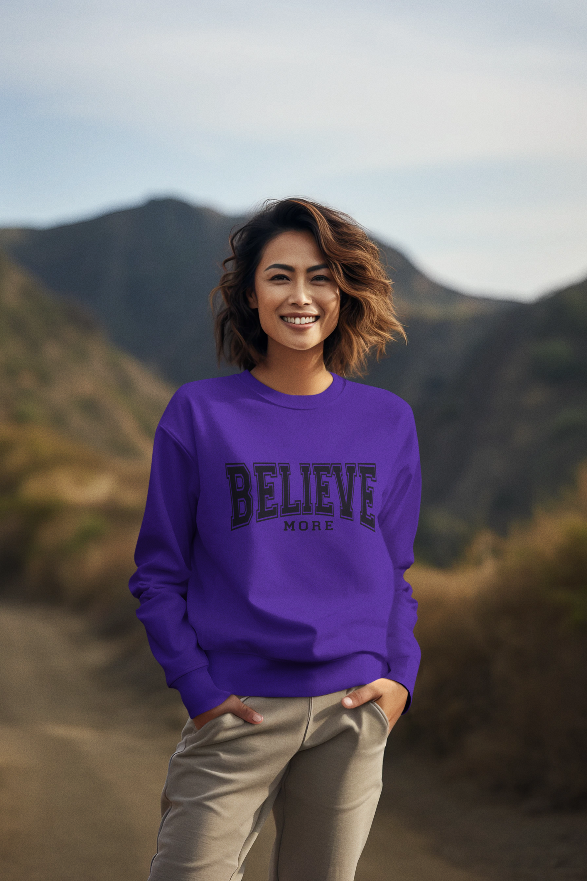 Believe In yourself and Believe More. Printed on a unisex 100% ultra-soft Softstyle sweatshirt for comfort that matches the message.