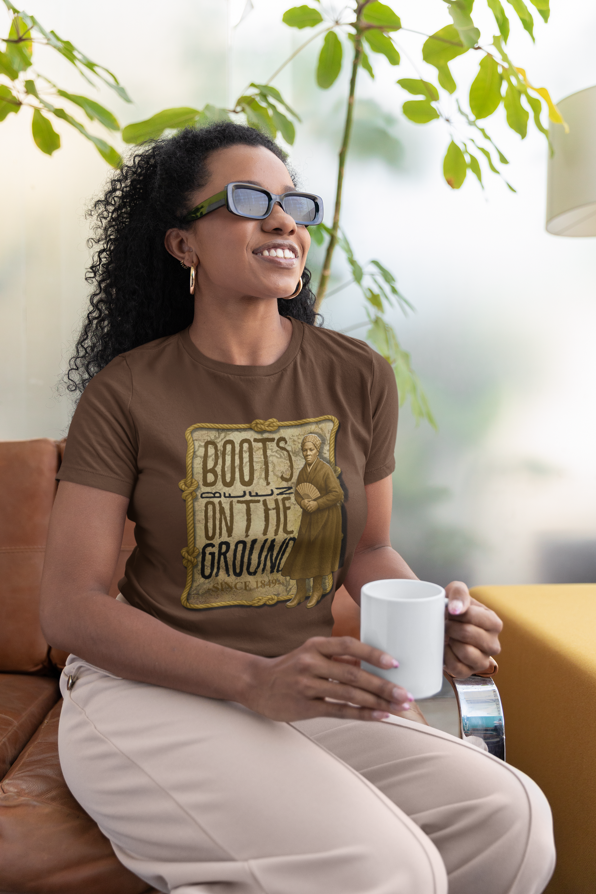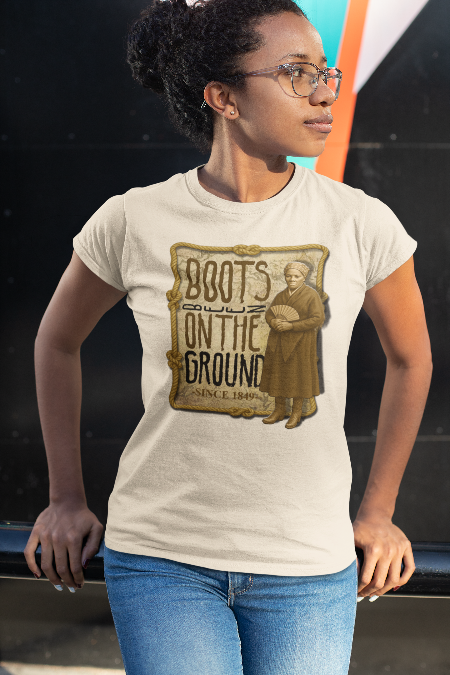 ‘Boots BEEN on the Ground since 1849’ Harriet Tubman Unisex; 100% Cotton t-shirt.