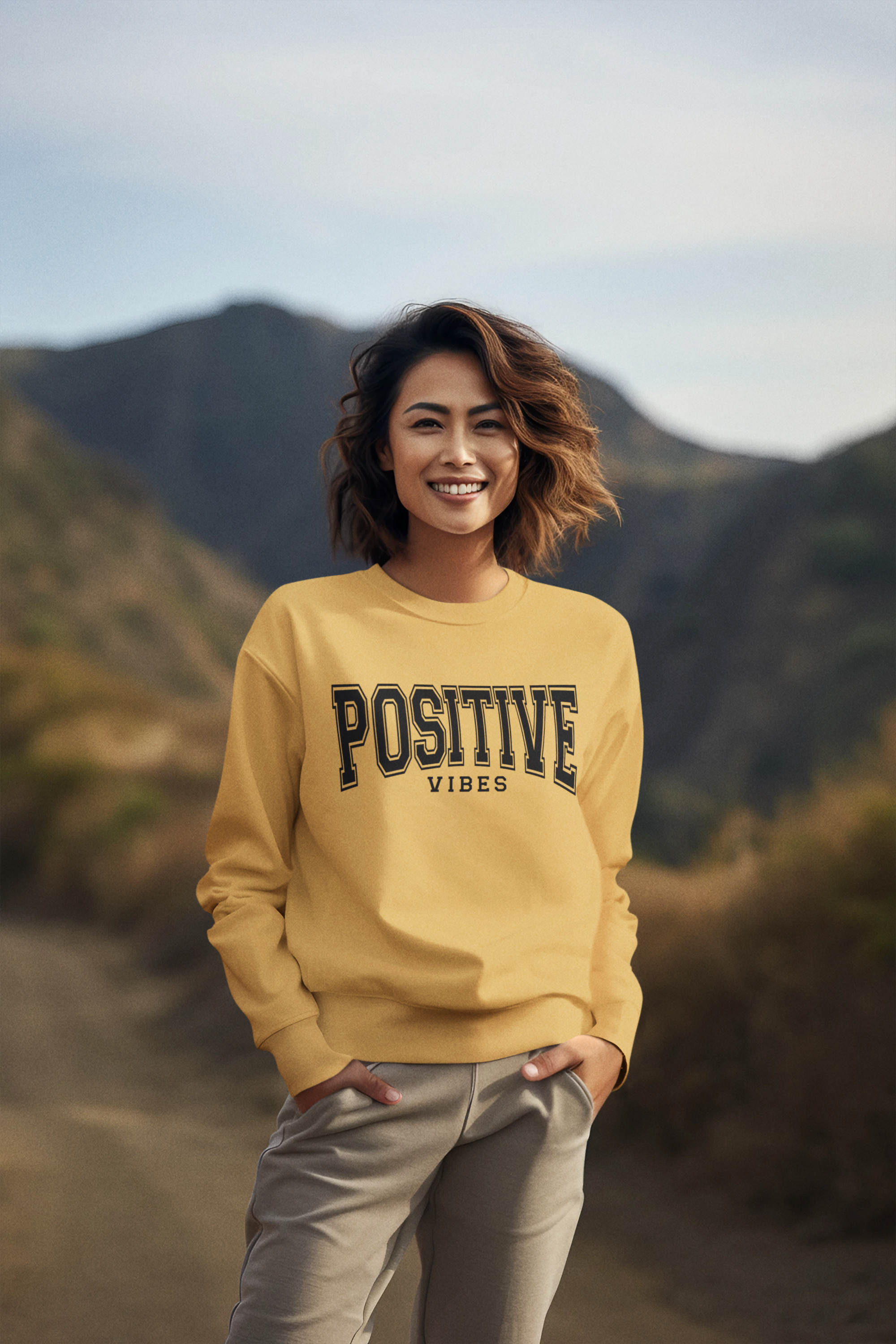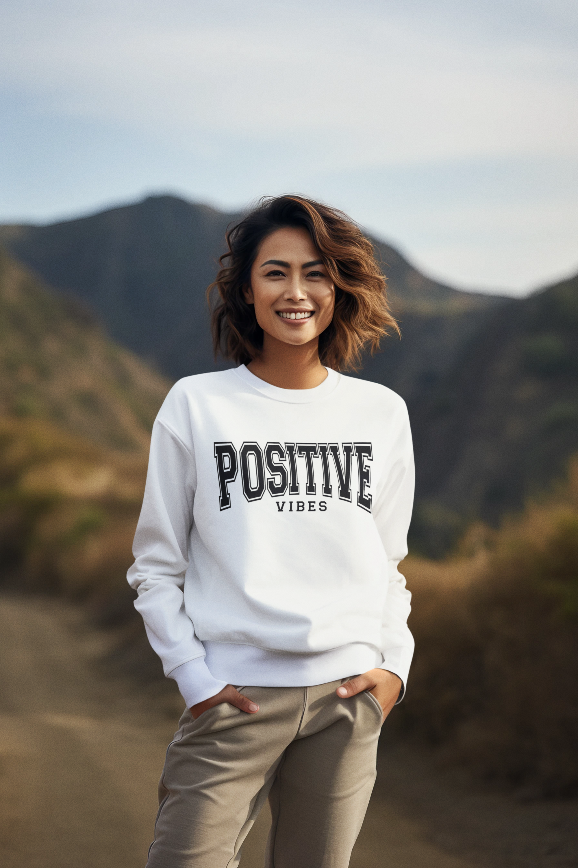 Positive Vibes and Think Positive. Printed on a unisex 100% ultra-soft Softstyle sweatshirt for comfort that matches the message.