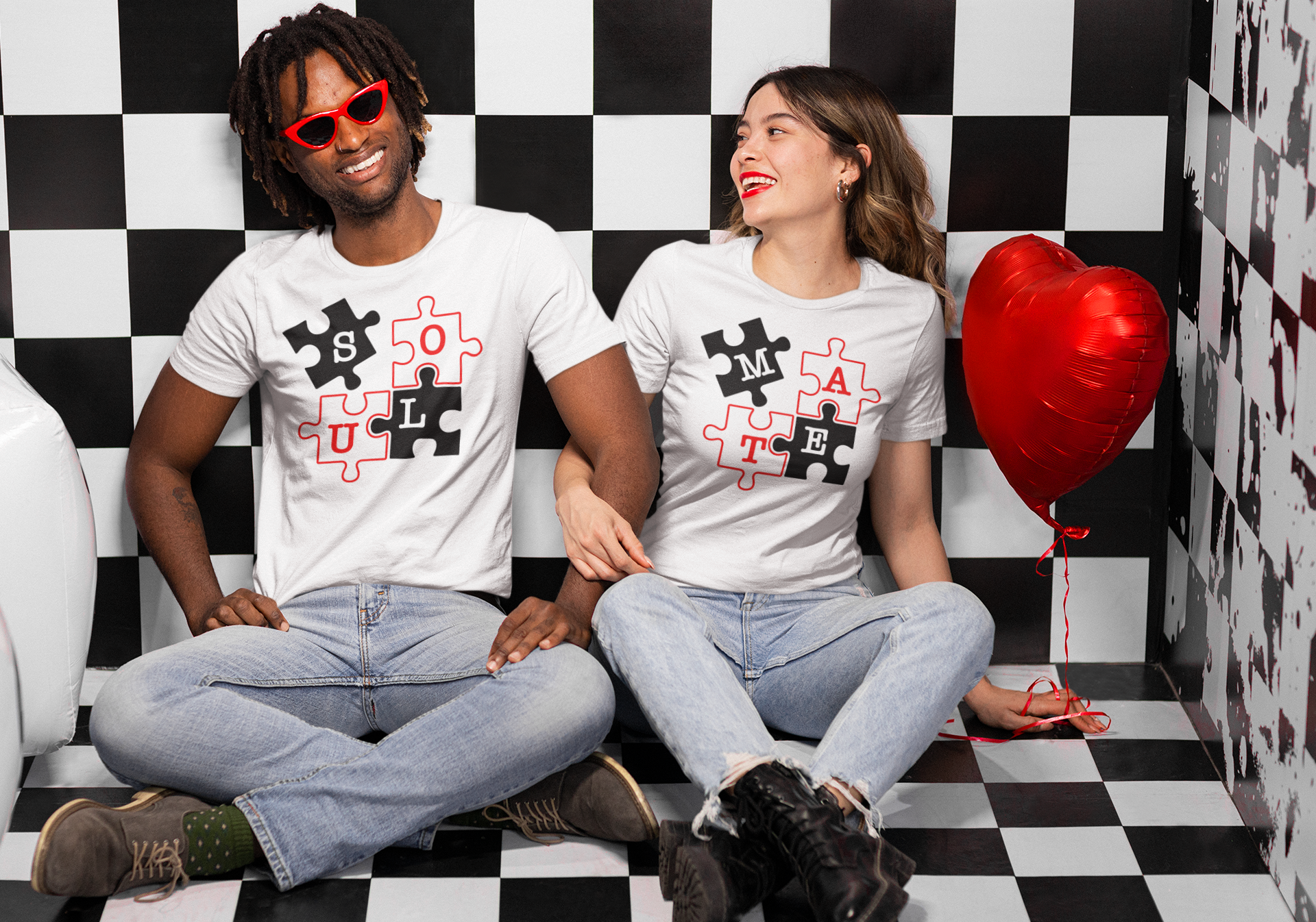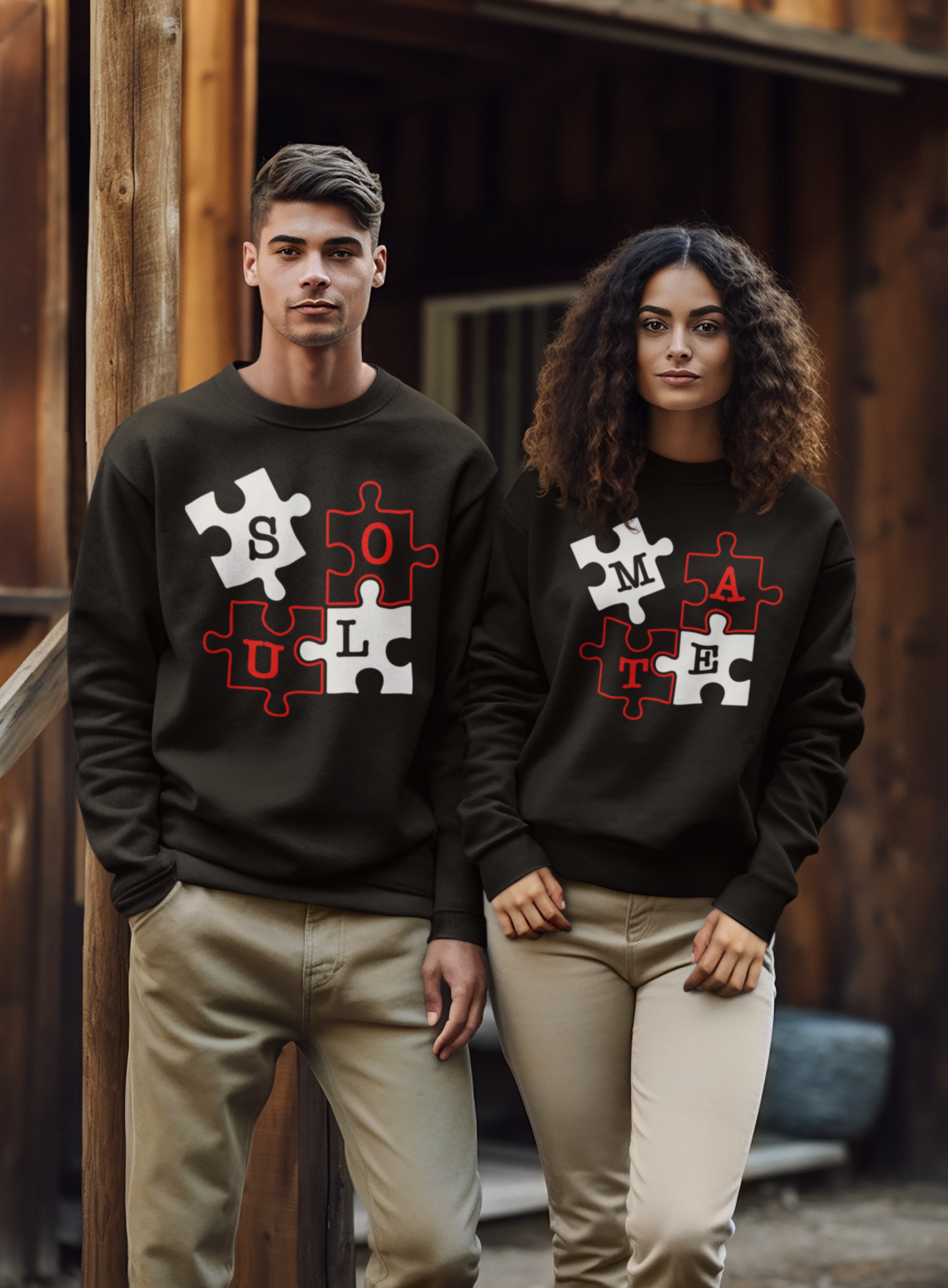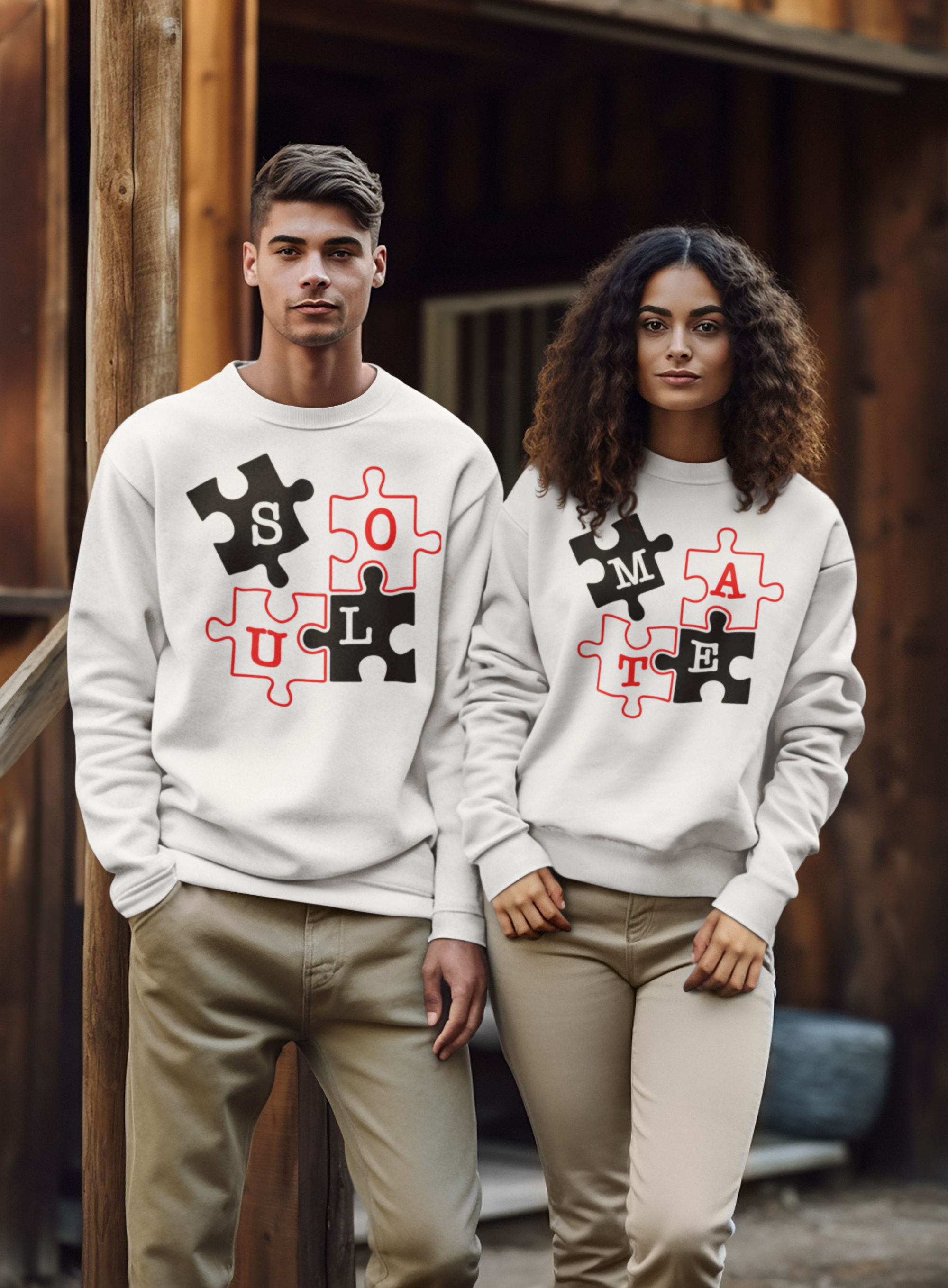 Matching Couple Valentine t-shirt or sweatshirts: “Soul” & “Mate”